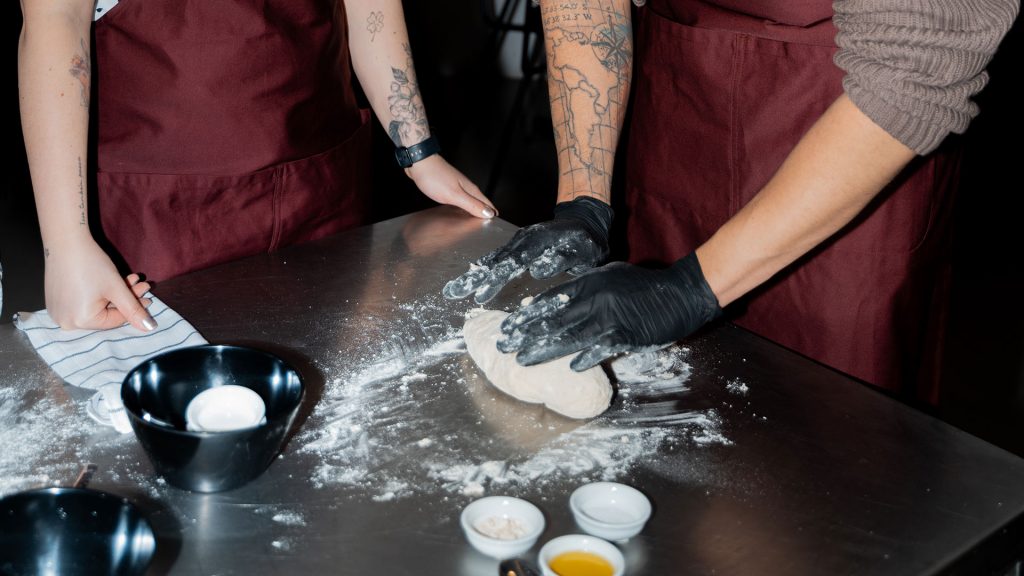Nos vamos a mover a la zona del horno, donde vas a aprender a estirar la masa como un auténtico pizzaiolo napolitano: con las manos, sin rodillo, respetando esa forma redonda y ese borde inflado tan característico.
